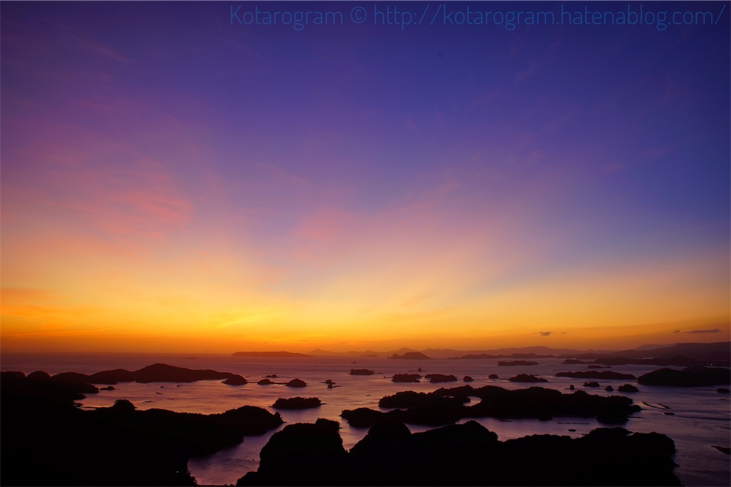 2019-09-20 写真日和2019/09/19夕景 写真 趣味 昨日2019/09/19は「九十九島の日」ということで、とても久しぶりに夕景を撮りに行ってきました。 日没後のマジックアワー、風が強くて半袖では寒かったデス。確実に季節は変わっていますね。